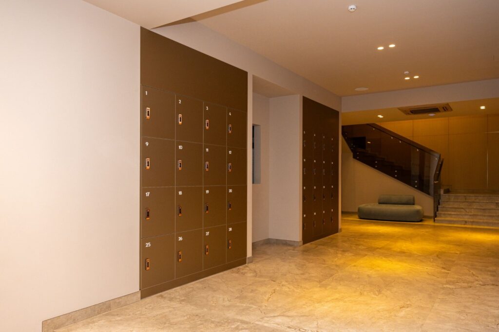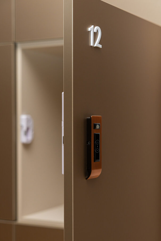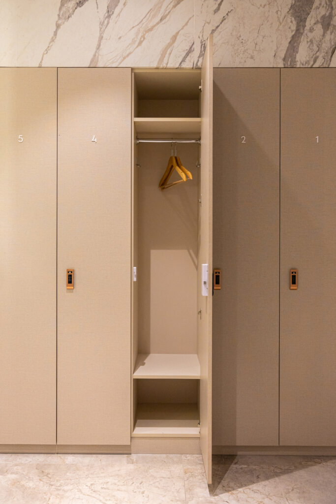 Dulapurile sunt dotate cu lacăte digitale, care oferă siguranță obiectelor personale și o utilizare simplă pentru membri. Cuierele fixe integrate și sistemele de prindere robuste completează un mobilier gândit pentru trafic ridicat și utilizare pe termen lung.