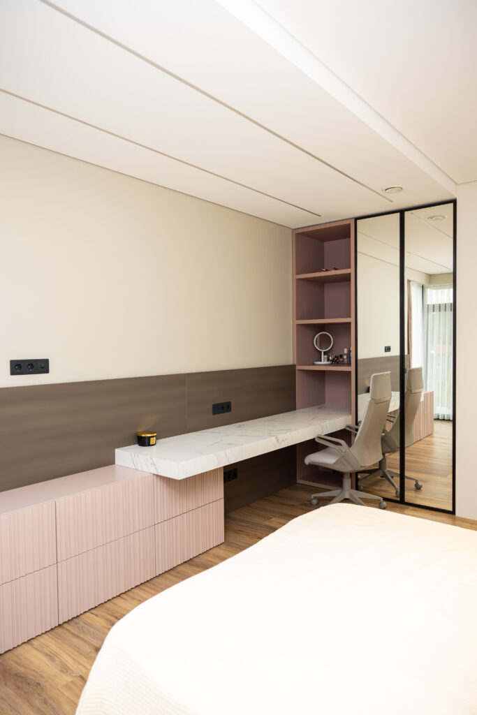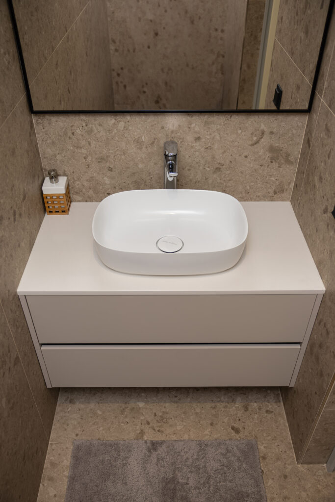 În fiecare încăpere, mobilierul a fost realizat din materiale durabile și ușor de întreținut, adaptate nevoilor reale ale beneficiarilor. De la compartimentarea eficientă a sertarelor până la poziționarea practică a oglinzilor sau rafturilor, totul a fost gândit pentru a face viața de zi cu zi mai ușoară.
