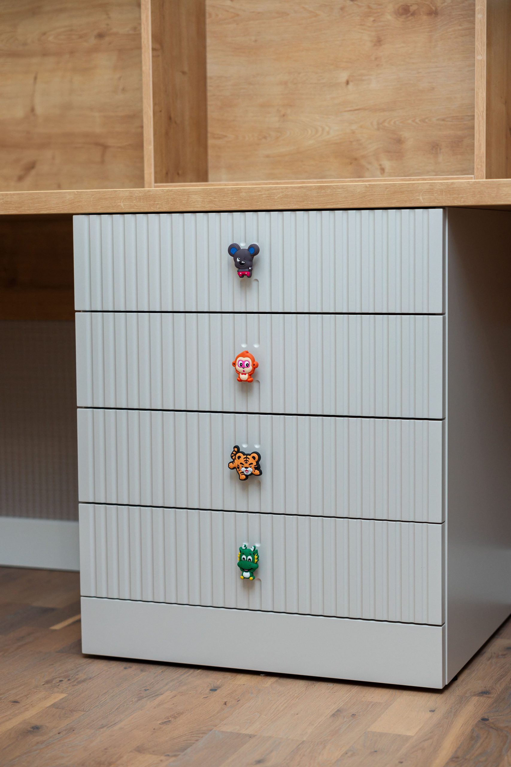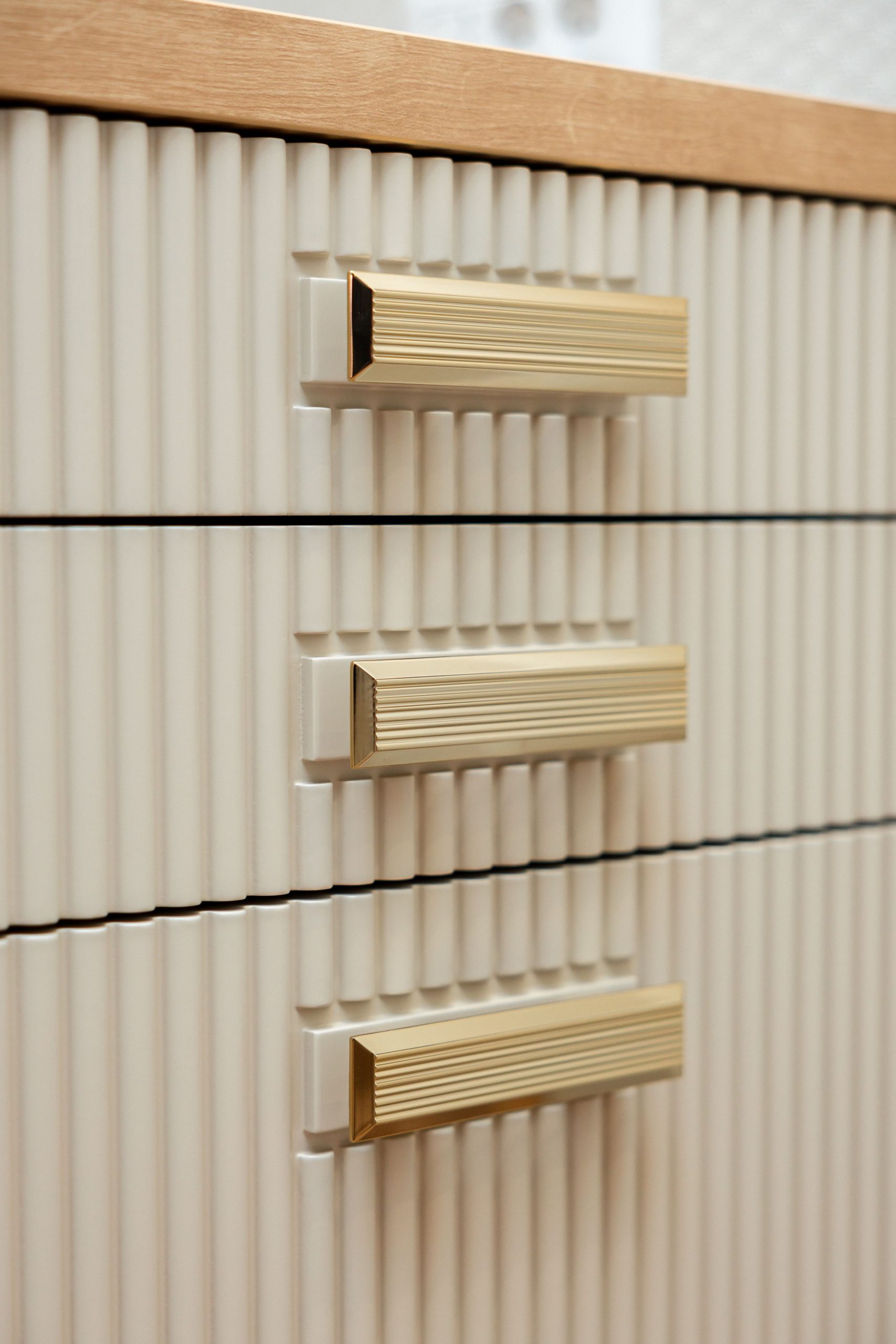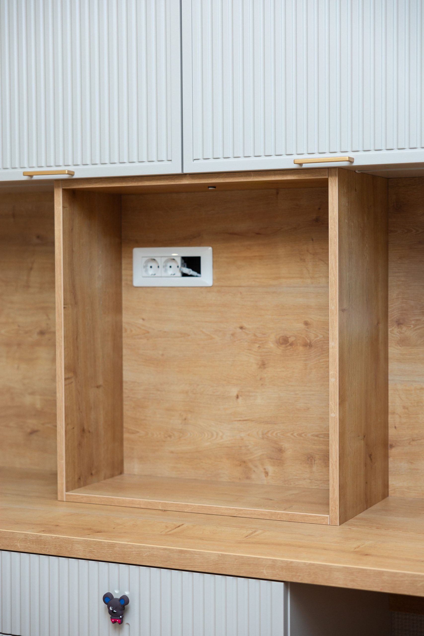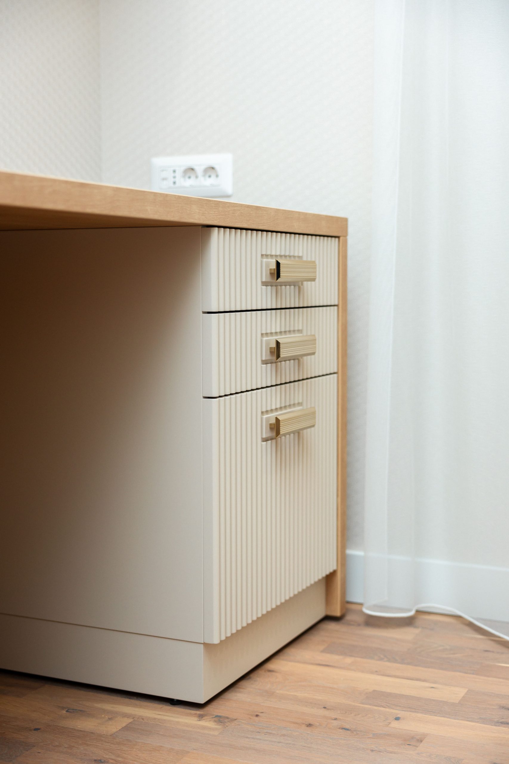 În acest proiect am dotat cu mobilier 2 dormitoare, care se evidențiază printr-un design elegant și bine echilibrat. Paleta cromatică caldă, combinată cu texturile din lemn și fronturile riflate, creează un ambient relaxant și modern. Zona de depozitare este inteligent integrată prin dulapuri spațioase și corpuri suspendate, care păstrează un aspect aerisit și organizat. Biroul minimalist, realizat din aceleași materiale, oferă un spațiu practic de lucru, fără a încărca vizual încăperea. Detaliile fac diferența: mânerele metalice elegante, liniile curate și finisajele premium adaugă rafinament întregului concept. În același timp, compartimentarea eficientă permite utilizarea optimă a spațiului disponibil.