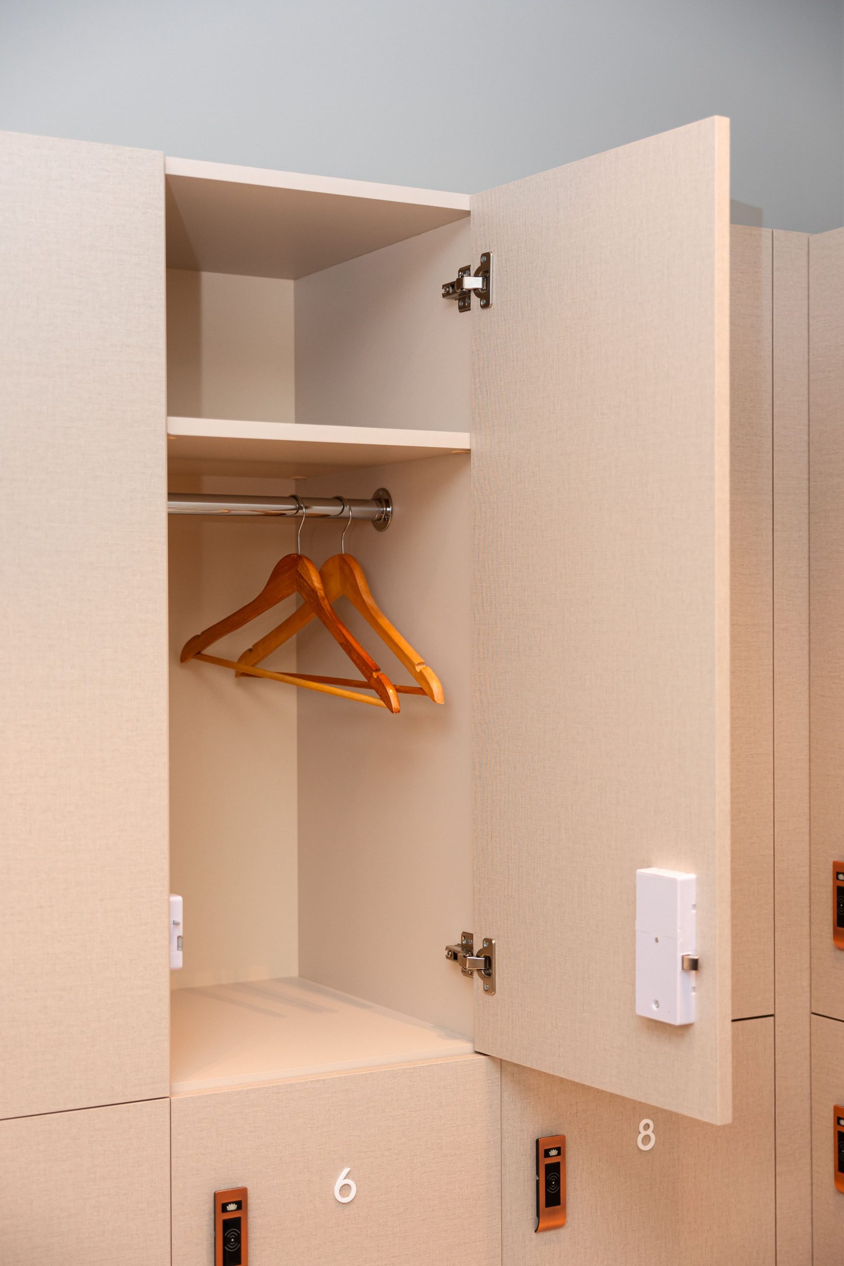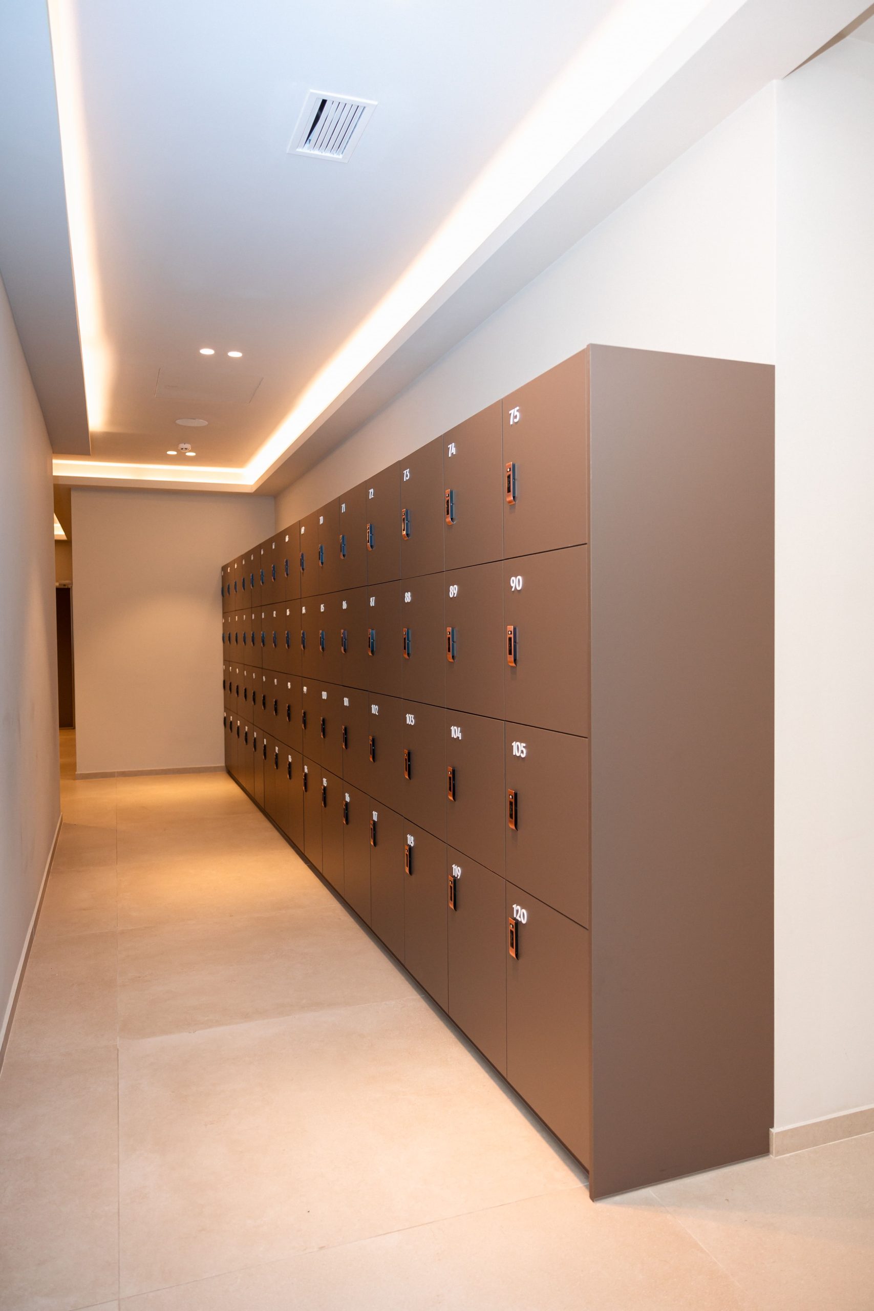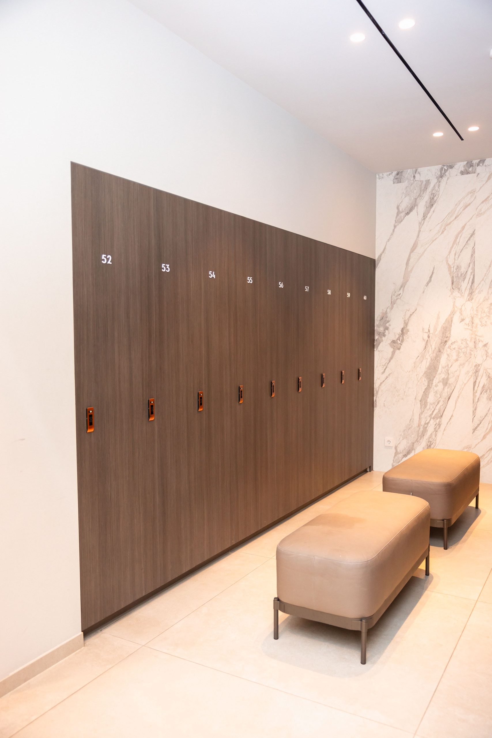 Proiectul realizat pentru Aquaterra aduce în prim-plan un concept modern de vestiare, unde funcționalitatea, siguranța și designul premium sunt perfect integrate. Mobilierul personalizat a fost conceput pentru a răspunde nevoilor diferite ale utilizatorilor, incluzând dulapuri dedicate pentru femei, bărbați și copii. Fiecare dulap este echipat cu lacăte digitale, oferind un nivel ridicat de securitate și o experiență simplificată pentru utilizatori. Compartimentarea inteligentă și cuierele fixe contribuie la o organizare eficientă, esențială într-un spațiu cu trafic intens. Materialele premium alese asigură durabilitate în timp, dar și un aspect estetic coerent, aliniat cu imaginea exclusivistă a clubului. Designul modern și liniile curate creează un ambient plăcut, confortabil și ușor de utilizat. Rezultatul este un spațiu practic și bine organizat, care îmbunătățește experiența membrilor și completează standardele ridicate ale clubului Aquaterra Sense.