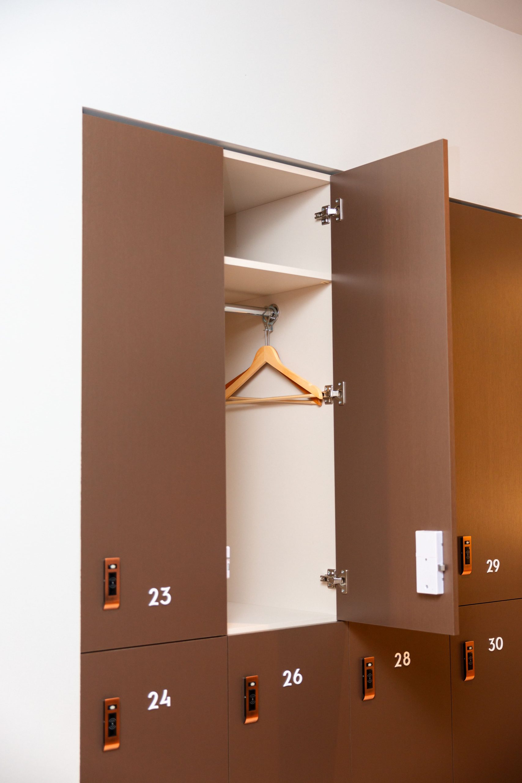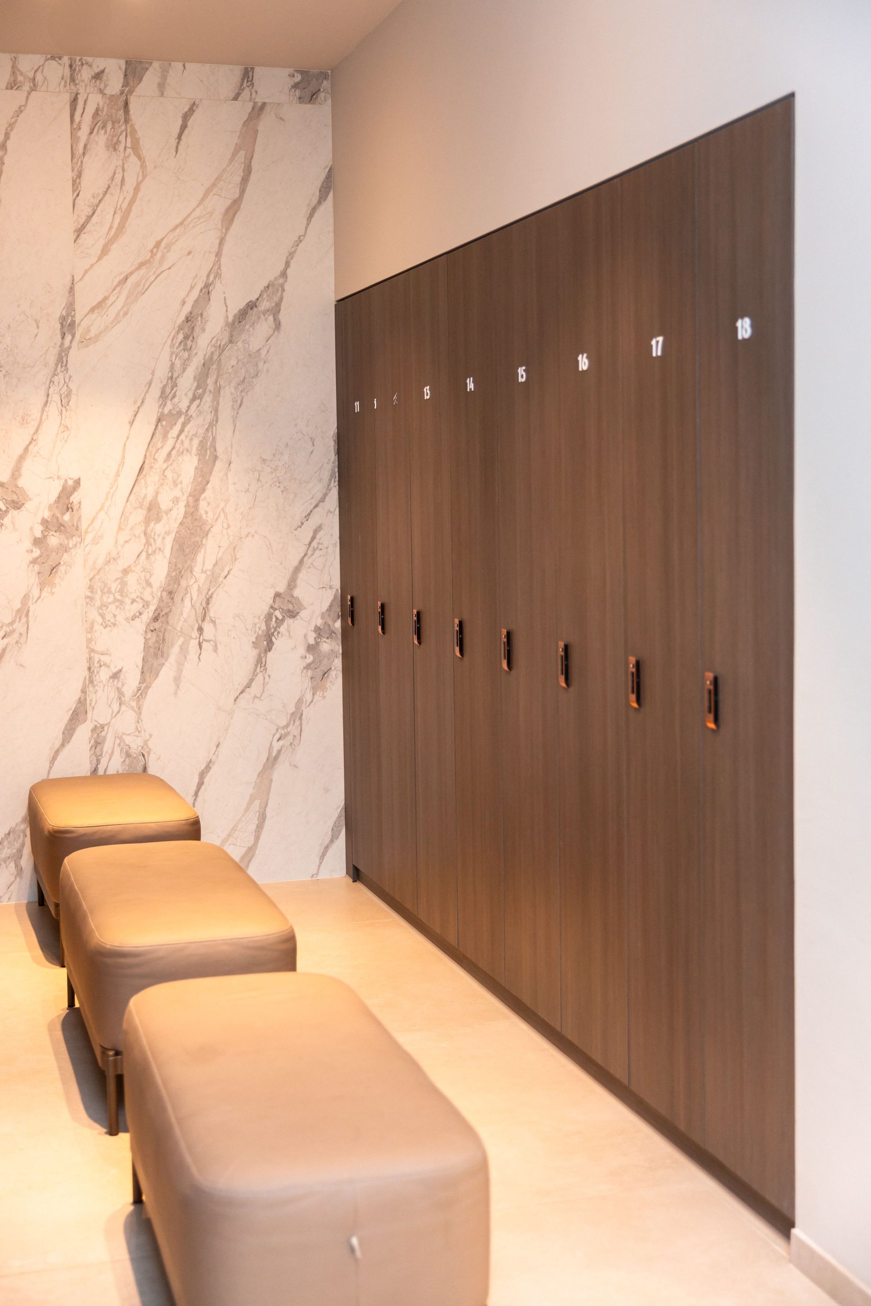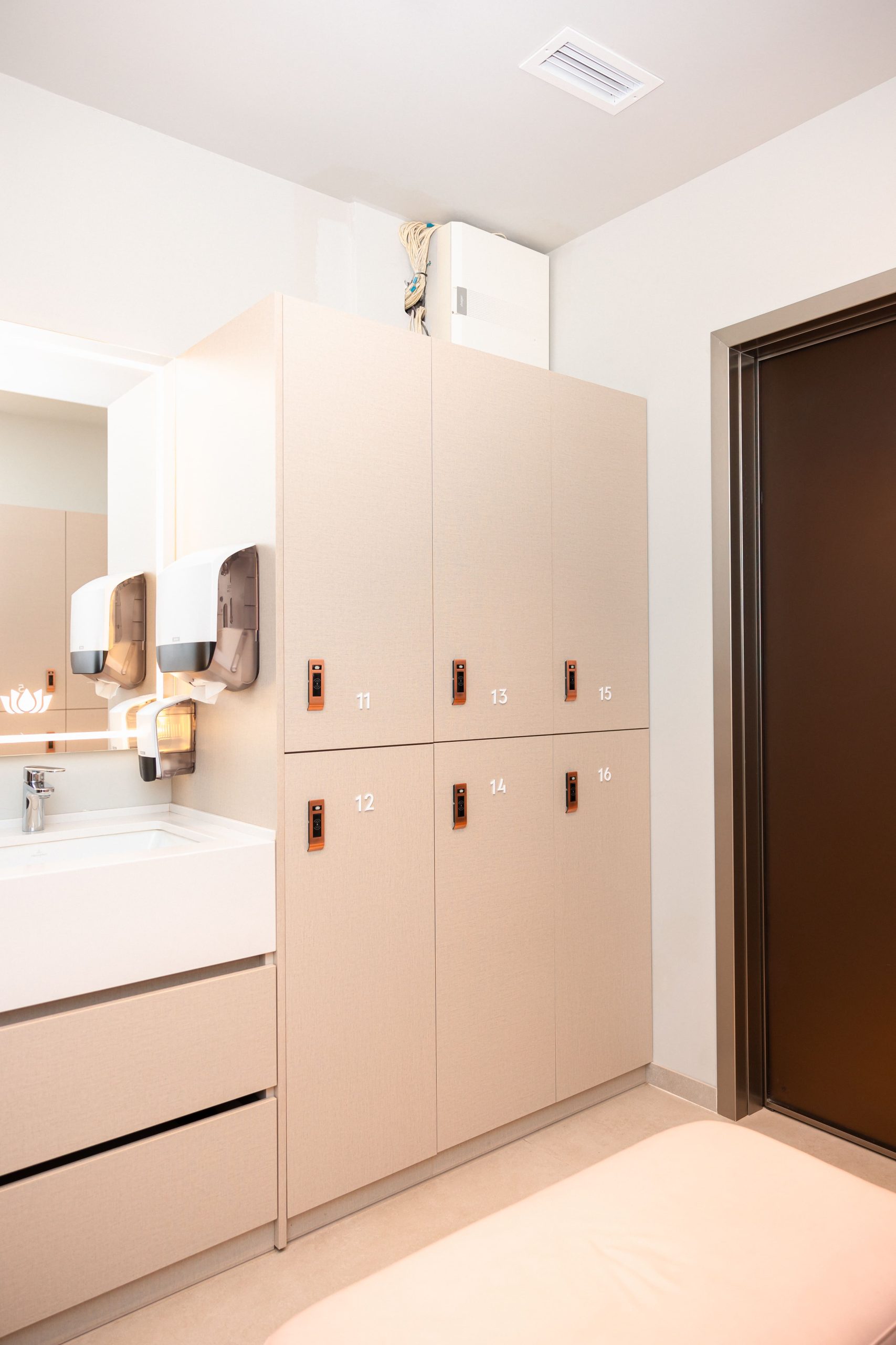 Proiectul realizat pentru Aquaterra aduce în prim-plan un concept modern de vestiare, unde funcționalitatea, siguranța și designul premium sunt perfect integrate. Mobilierul personalizat a fost conceput pentru a răspunde nevoilor diferite ale utilizatorilor, incluzând dulapuri dedicate pentru femei, bărbați și copii. Fiecare dulap este echipat cu lacăte digitale, oferind un nivel ridicat de securitate și o experiență simplificată pentru utilizatori. Compartimentarea inteligentă și cuierele fixe contribuie la o organizare eficientă, esențială într-un spațiu cu trafic intens. Materialele premium alese asigură durabilitate în timp, dar și un aspect estetic coerent, aliniat cu imaginea exclusivistă a clubului. Designul modern și liniile curate creează un ambient plăcut, confortabil și ușor de utilizat. Rezultatul este un spațiu practic și bine organizat, care îmbunătățește experiența membrilor și completează standardele ridicate ale clubului Aquaterra Sense.